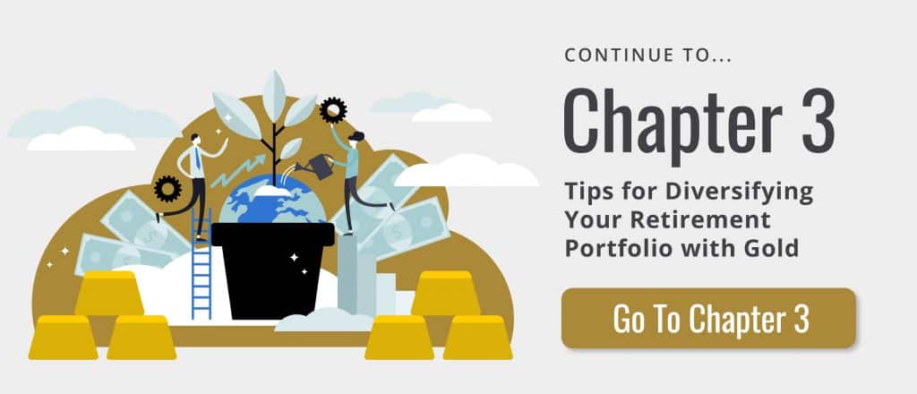 Continue reading Chapter 3 to learn more about the advantages of diversifying your IRA with gold and precious metals.