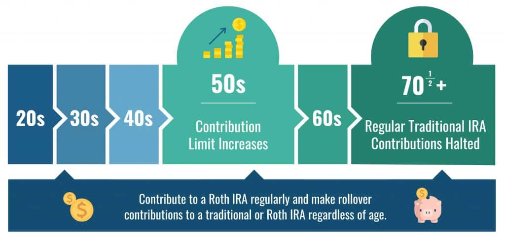 - You can still contribute to a Roth IRA regularly and make rollover contributions to a traditional or Roth IRA regardless of age.