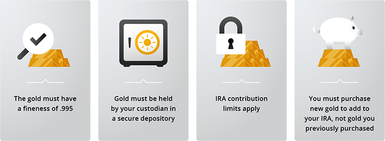 In addition, If you already own gold, you cannot add that gold to your IRA. But you can open a gold IRA and purchase new gold to add to your IRA.