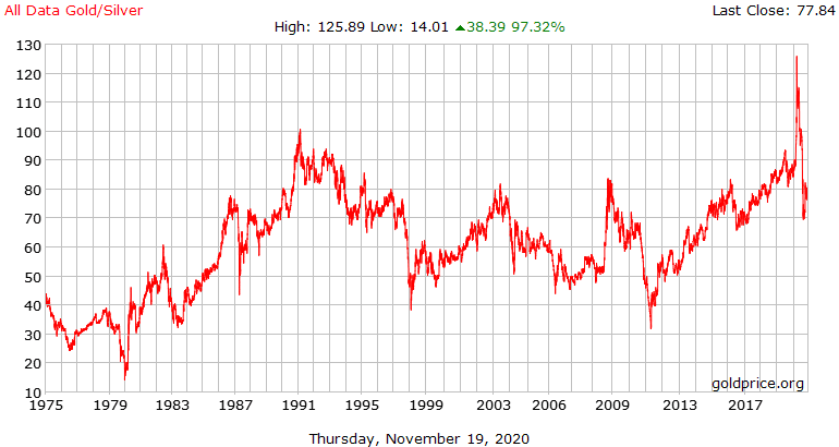 Changes in that ratio indicate which metal is valued more than the other, and can give investors an idea of whether to invest in gold or silver. Since gold and silver were first able to float freely in relation to each other in 1971, the price ratio between gold and silver has normally fluctuated between 40:1 and 60:1.